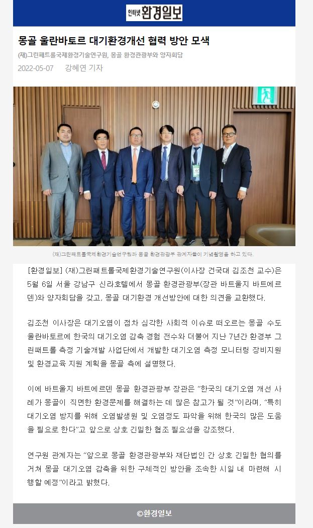 GPTF-몽골 대기환경개선 협력 논의